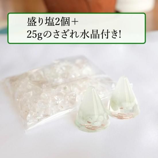 ※こちらは、「盛り塩2個」+「水晶25g付き」となります。