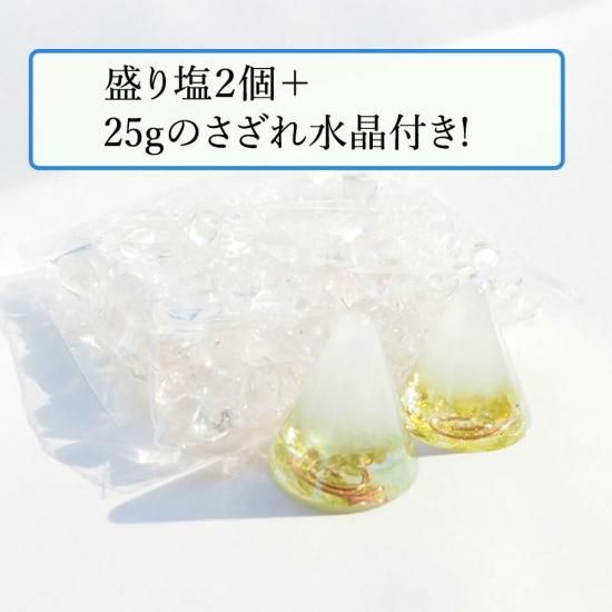 ◆内容:盛り塩オルゴナイト2点、25g水晶さざれ石