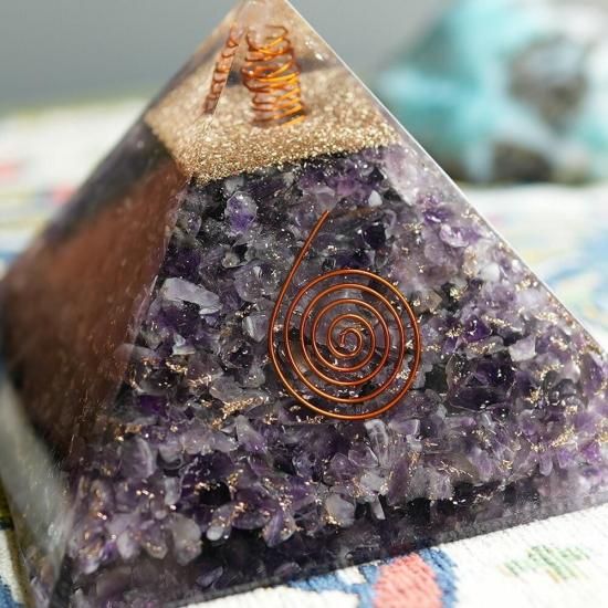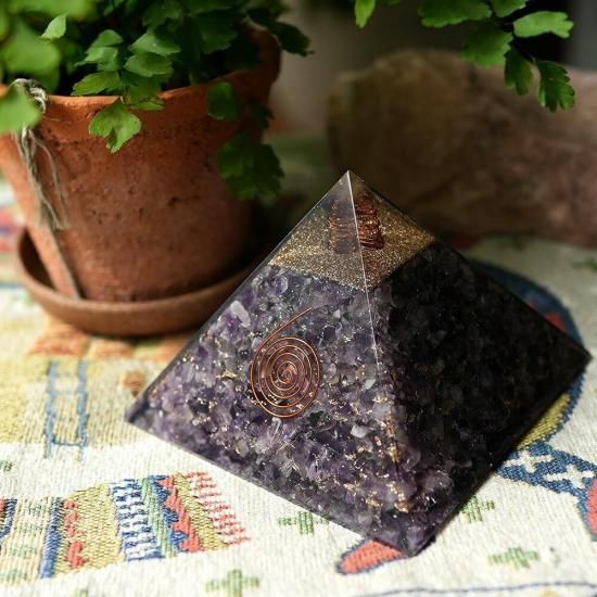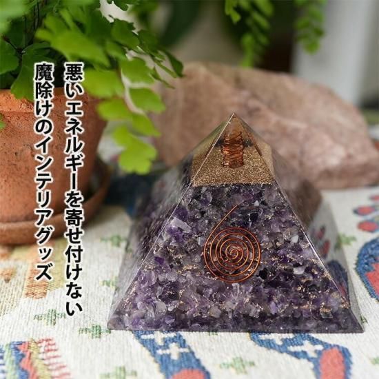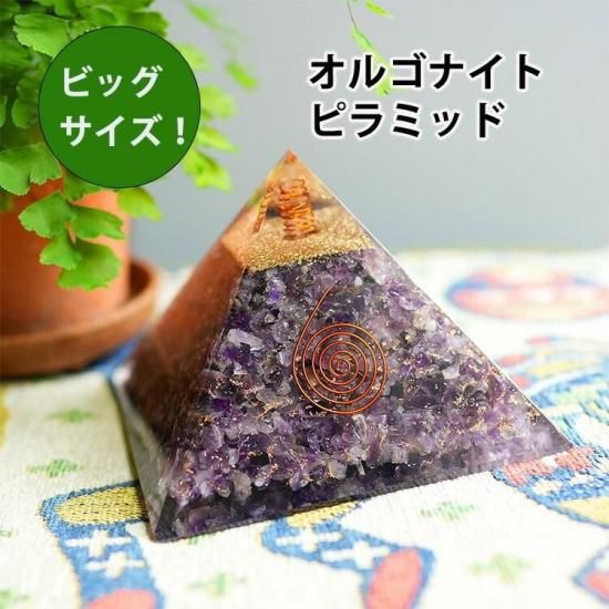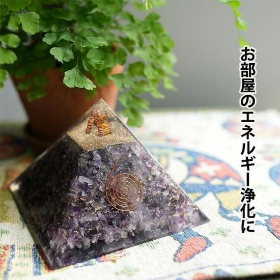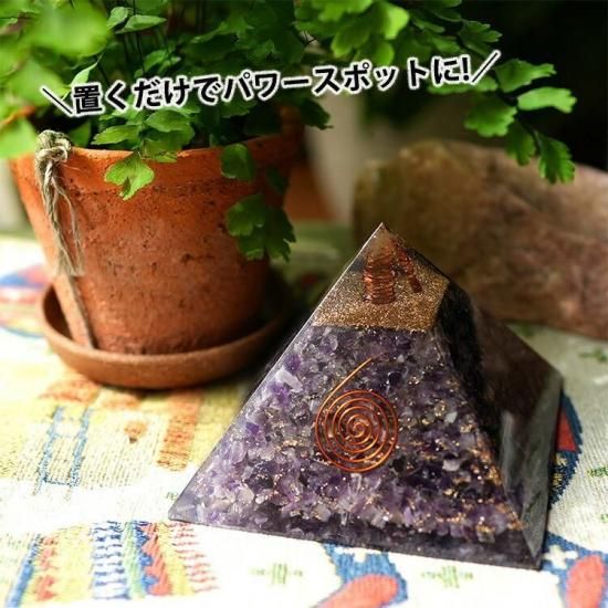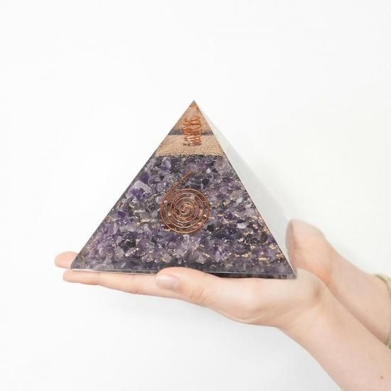 ◆素材:ヒマラヤ水晶ポイント入り!ビッグサイズ!アメジスト入り オルゴナイト ピラミッド