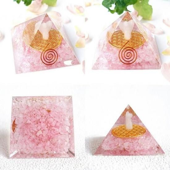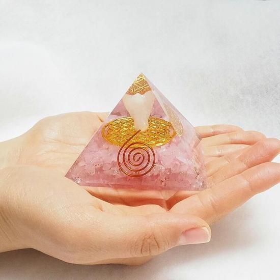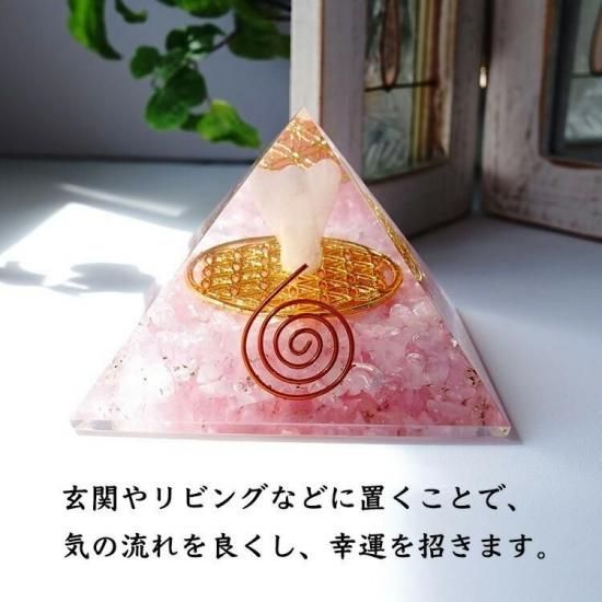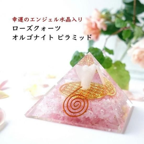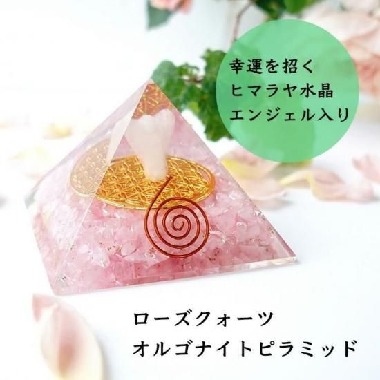 〜 ローズクォーツのチップとヒマラヤ水晶のエンジェルが入った、オルゴナイトのピラミッドです 〜
