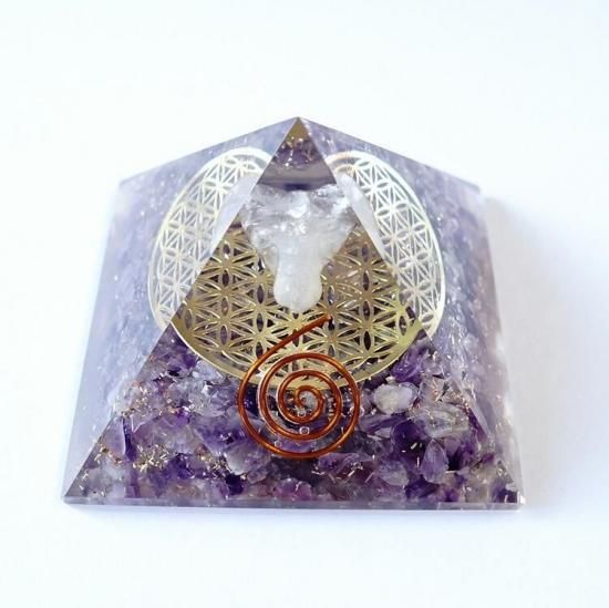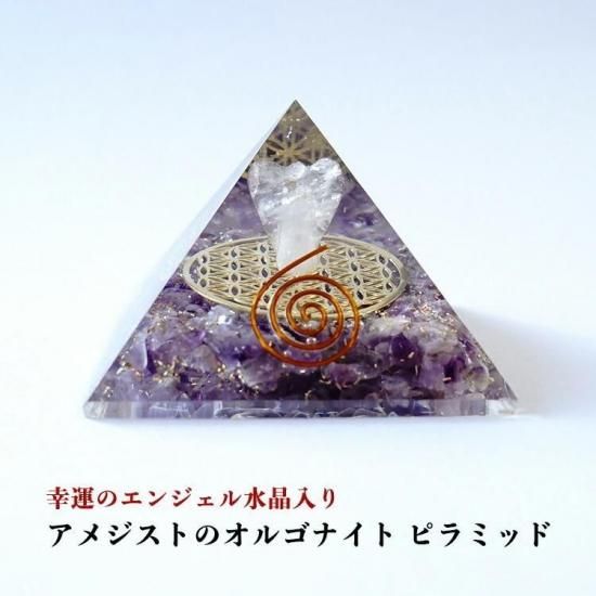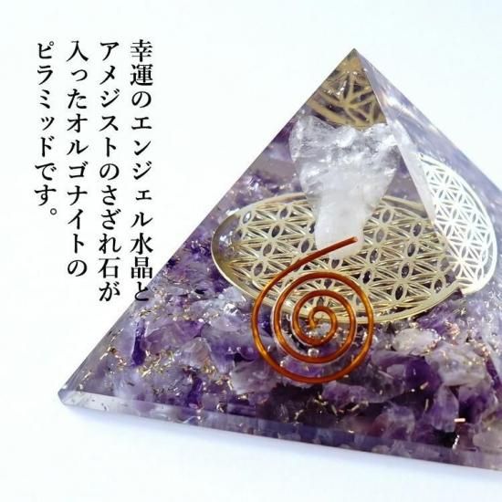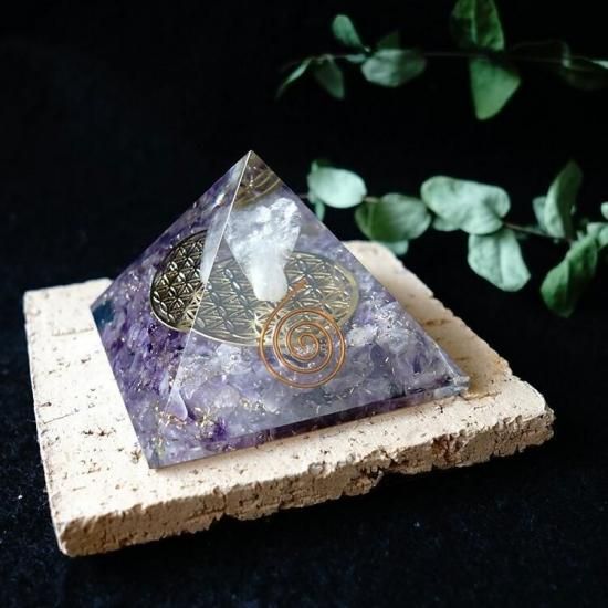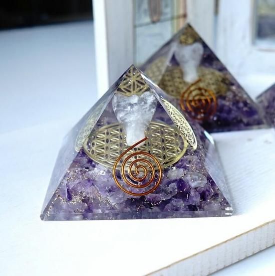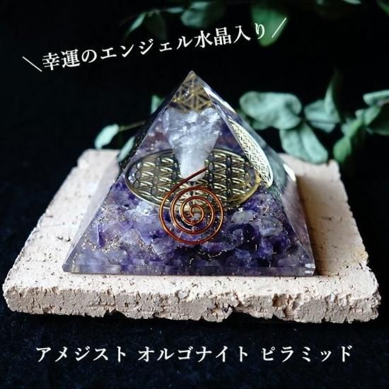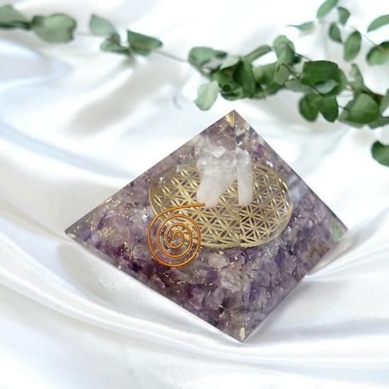 ◆素材 : アメジスト & エンジェル水晶 オルゴナイト ピラミッド
