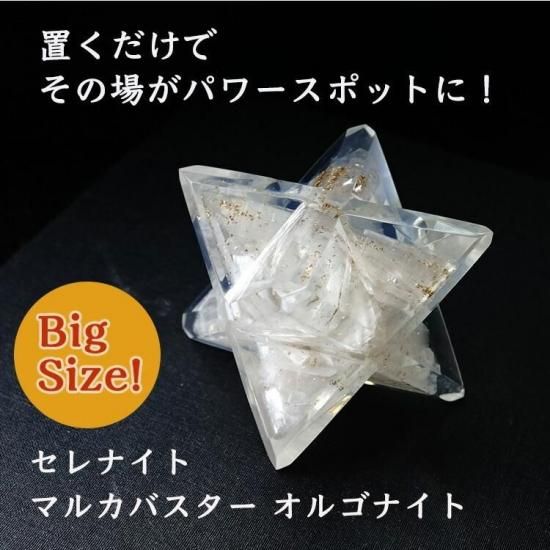 〜存在感抜群のビッグサイズ!置くだけでパワースポットになる!ビッグサイズのセレナイト入りのマルカバスターオルゴナイトです。〜