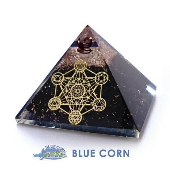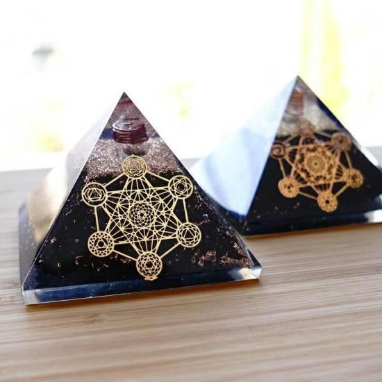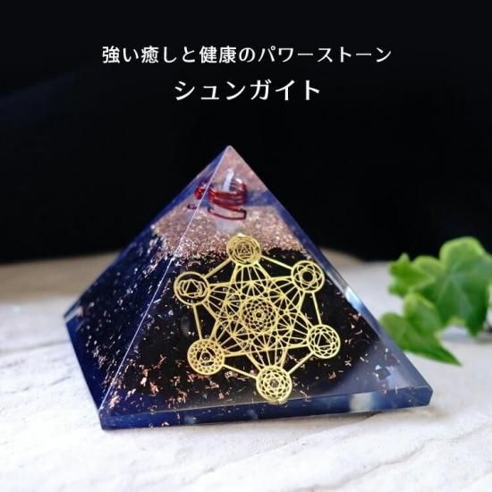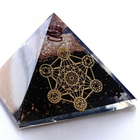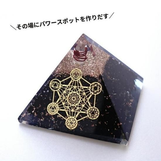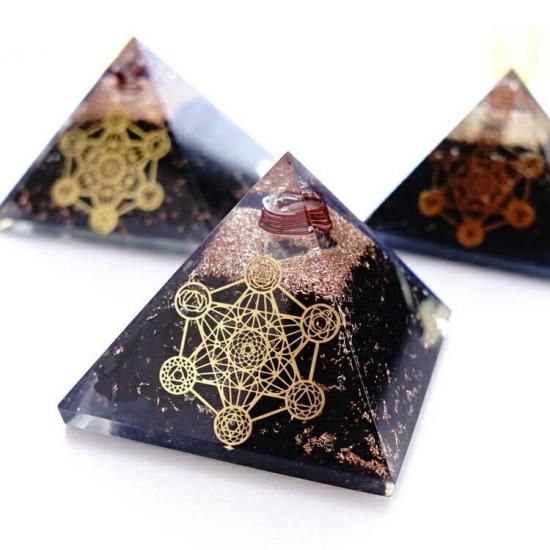 〜 神が作った完璧な図形・正多面体が全て入っている 神聖なる幾何学模様のメタトロンキューブの図形と 癒しの生命の石 シュンガイトのさざれ石が入った オルゴナイトのピラミッドです。〜