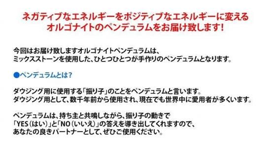 〜振り子の動きで、「YES(はい)」と「NO(いいえ)」の答えを与えてくれる!ミックスストーンのオルゴナイトペンデュラムです!〜