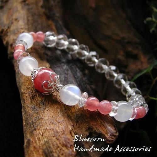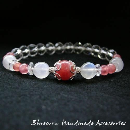 〜 10ミリ球と5ミリ球の高品質な(5A & 4A)インカローズ と 高品質(4A)ブルームーンストーンを組み合わせた 幸運を招くブレスレットです。 〜