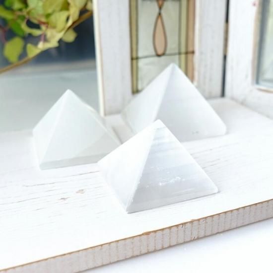 〜 お部屋やデスクの上に 優しいエネルギーを放つ セレナイトのお守りピラミッドです。 〜