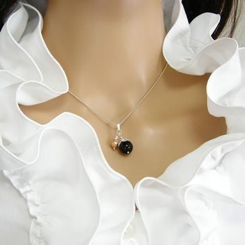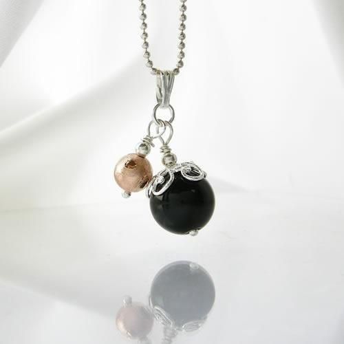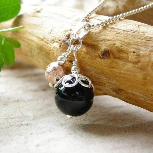 モリオン黒水晶の10ミリ球を中心としたペンダントです。〜