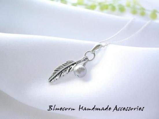 〜シルバー925使用!6ミリ球のギベオン隕石付き!フェザーペンダントトップ!〜