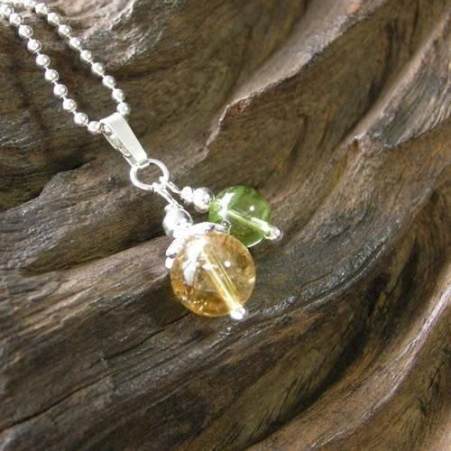 〜 富 財産 金運UP の シトリン と マイナスエネルギーをプラスエネルギーに変える ペリドット の ツイン ペンダントトップです 〜