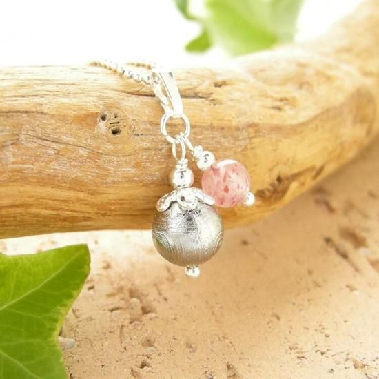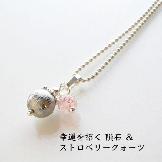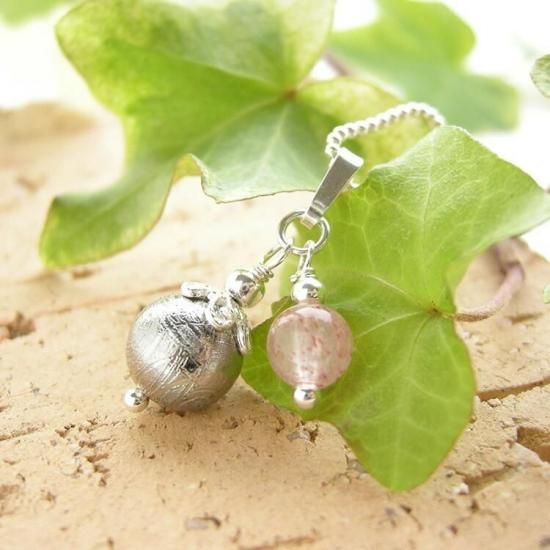 〜 「遥か遠い宇宙からのメッセージを持つ石」 シルバー925使用 幸運を招く 隕石 とストロベリークォーツのペンダントトップです。〜