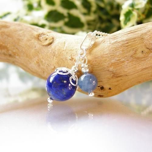 〜 幸運を招く ラピスラズリ と 美しい藍色の結晶 カヤナイト(カイヤナイト)の ペンダントトップです 〜