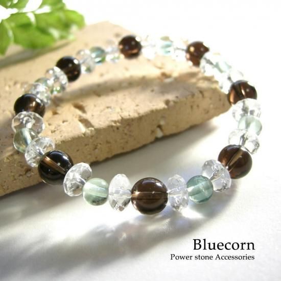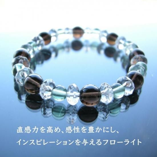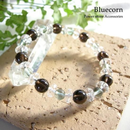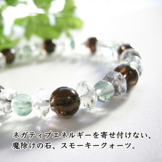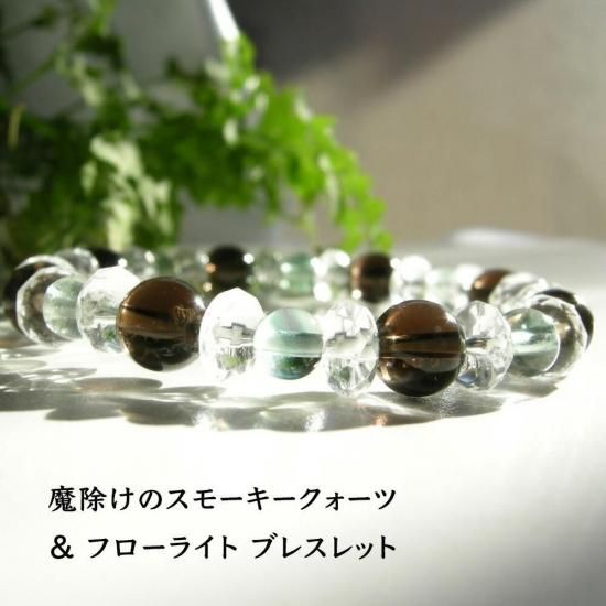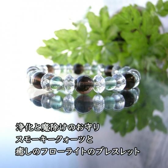 〜 大地とのつながりを持ち、ネガティブエネルギーから守る 魔除け・邪気払いのパワーストーン スモーキークォーツ と 癒しのフローライトのブレスレットです! 〜