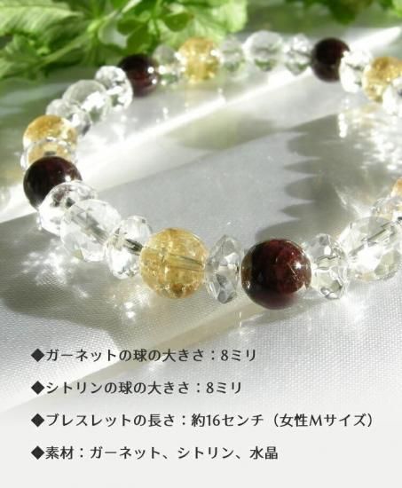 ガーネット(前向きな変化と勝利)シトリン(金運UPと幸福)