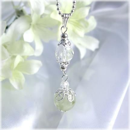 ◆ペンダントの球の大きさ:プレナイト 約10ミリ、ヒマラヤ水晶 約7〜8ミリ