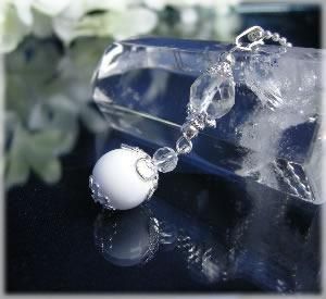 ◆ペンダントの球の大きさ:ホワイトアゲード 約10ミリ、ヒマラヤ水晶 約7〜8ミリ