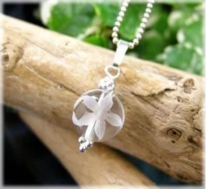 そのプルメリアが手彫りで彫られた、プルメリア水晶ペンダントです!