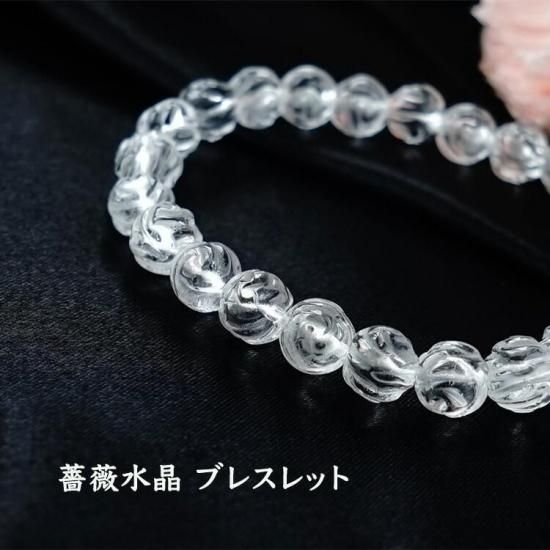 〜 ひとつひとつの水晶に薔薇の花が描かれた 薔薇水晶 の 一連ブレスレットです 〜