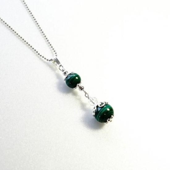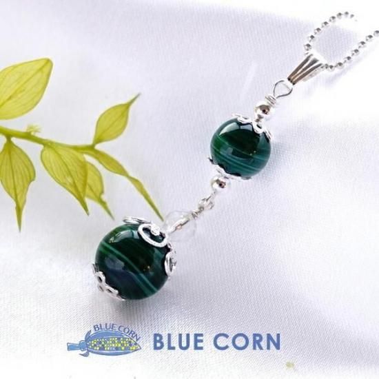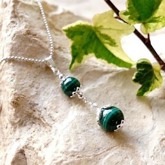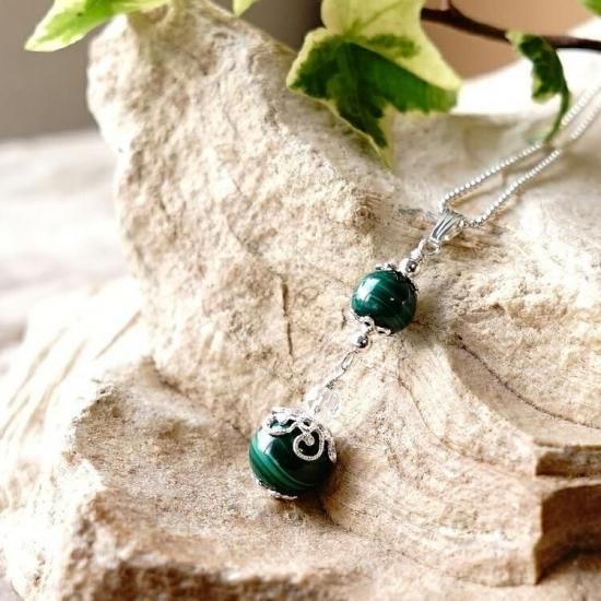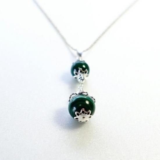 〜シルバー925使用!魔除けのパワーストーン!マラカイトのダブルペンダントトップです〜