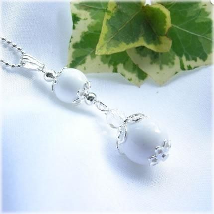 ◆ホワイトアゲート 真っ白な天然石のホワイトアゲートと透明クリスタルが