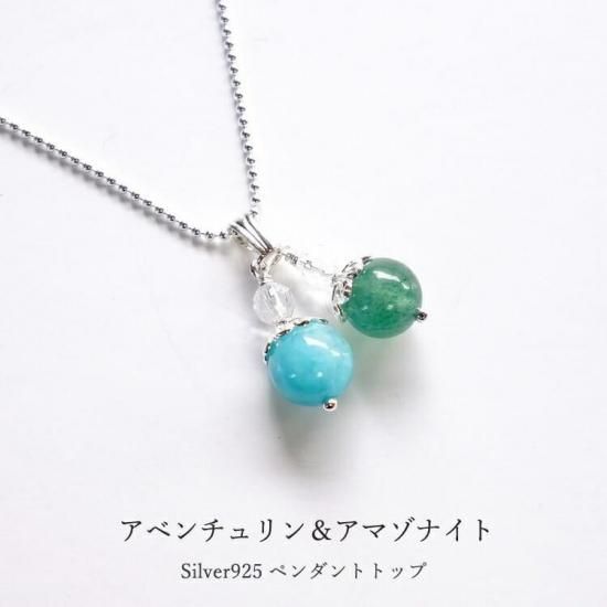 ◆素材:アベンチュリン & アマゾナイト ツイン ペンダントトップ シルバー925
