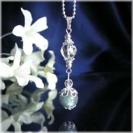 ◆ペンダントの球の大きさ:ラブラドライト 約10ミリ、ヒマラヤ水晶 約8ミリ