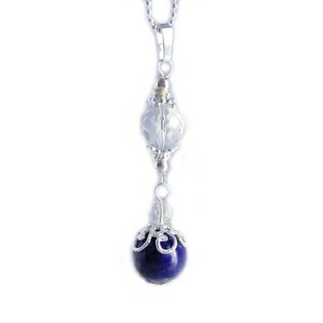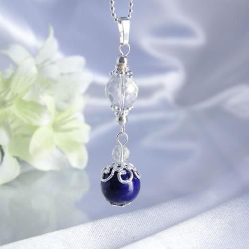 ◆ペンダントの球の大きさ:ラピスラズリ 約10ミリ、ヒマラヤ水晶 約7〜8ミリ