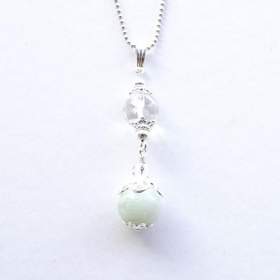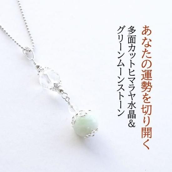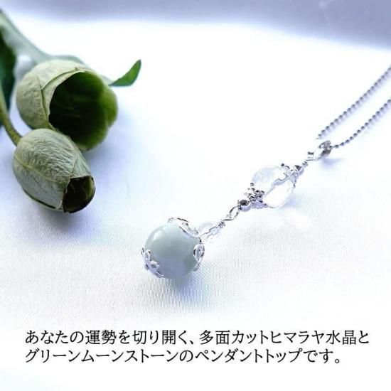 〜あなたの運勢を切り開く、多面カットヒマラヤ水晶とグリーンムーンストーン、水晶のペンダントトップです。〜