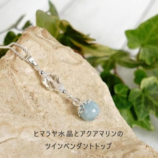 〜シルバー925 あなたの運勢を切り開く ヒマラヤ水晶と人生の大切なお守り石 アクアマリンのツインペンダントトップです。〜