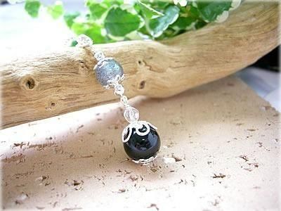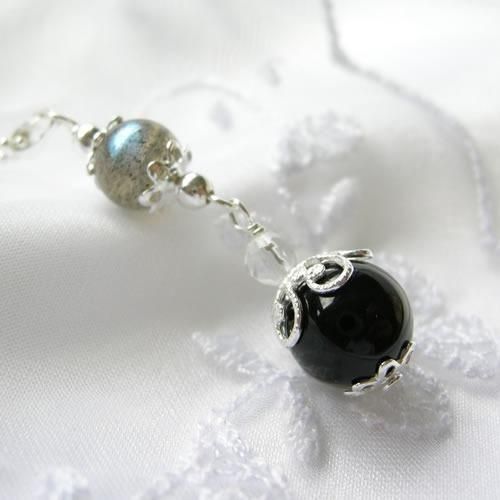 ◆ペンダントの球の大きさ:ブラックトルマリン 約10ミリ、ラブラドライト 約8ミリ