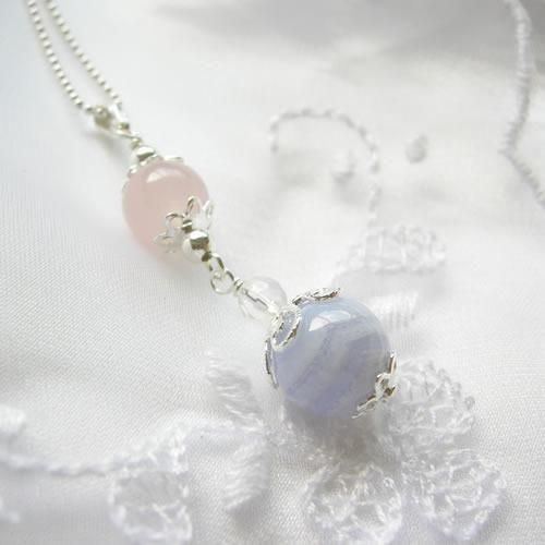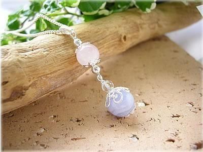 〜 心が癒され 自然に笑顔になれる ブルーレース と 内面の優しさを引き出し高めてくれる ローズクォーツ の ペンダントトップです 〜