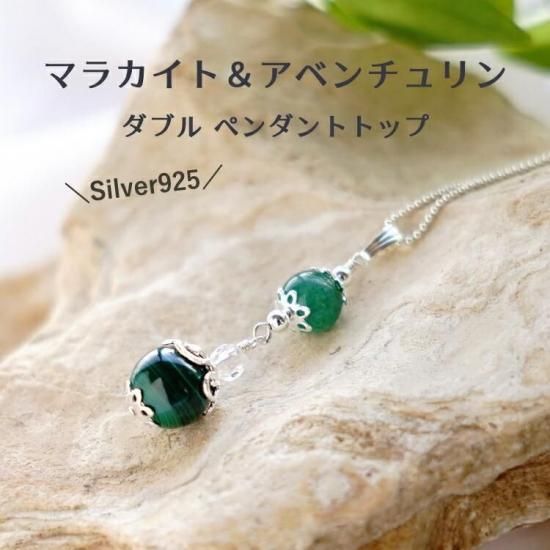 ◆素材:マラカイト&アベンチュリン ダブル ぺンダントトップ チャームシルバー925