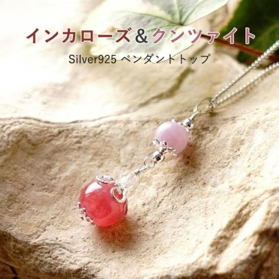 ◆素材:高品質インカローズ & クンツァイト (クンサイ)ペンダントトップ シルバー925