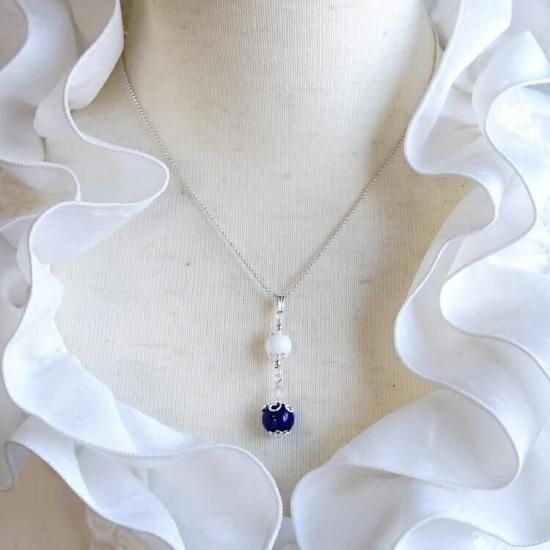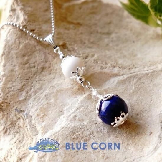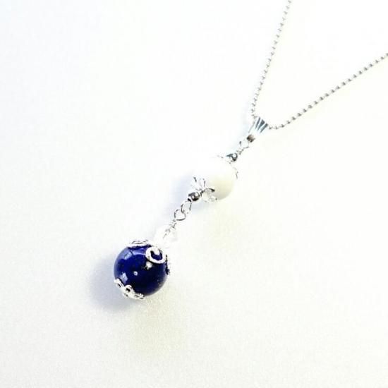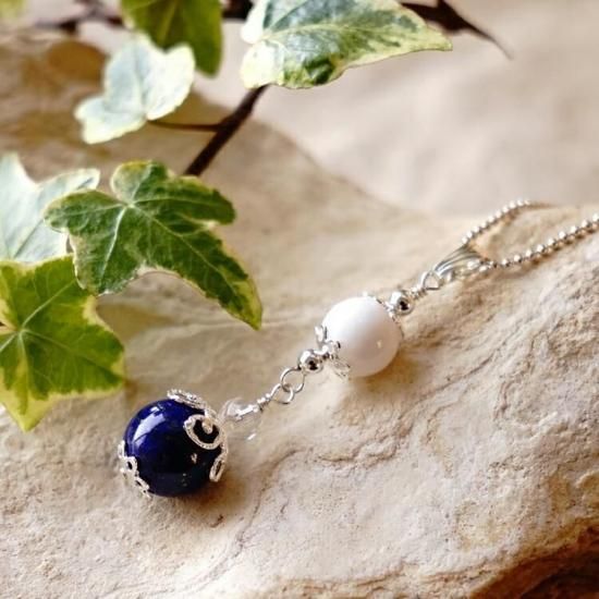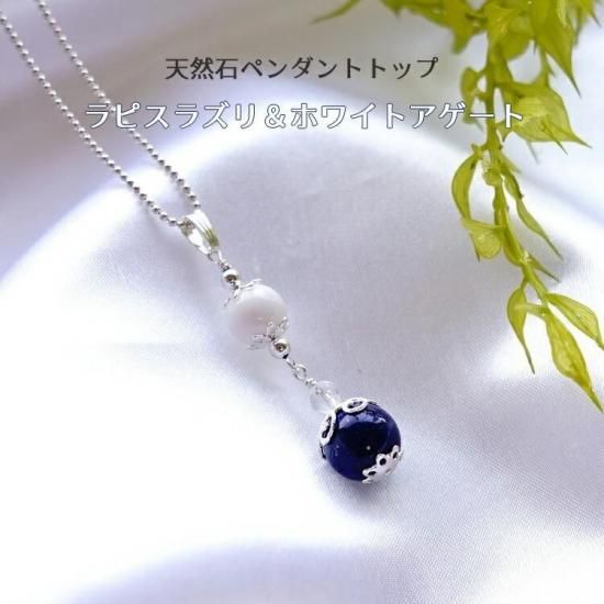 〜シルバー925使用!幸運を引き寄せる!ラピスラズリ&ホワイトアゲートのペンダントトップです〜