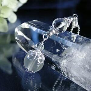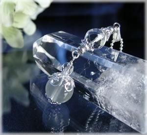 ◆ペンダントの球の大きさ:ミルキークォーツ 約10ミリ、ヒマラヤ水晶 約7〜8ミリ