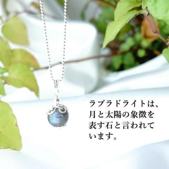月と太陽の象徴を示すと言われているラブラドライトは、グレーの色に見えますが角度を変えると青、緑、ピンク、オレンジ、ゴールドの色がじり合って、虹色の光沢が現れます。
