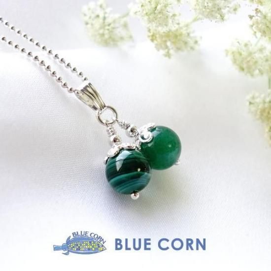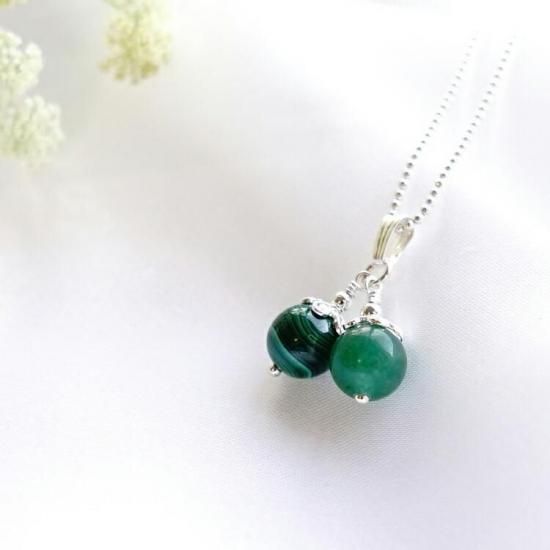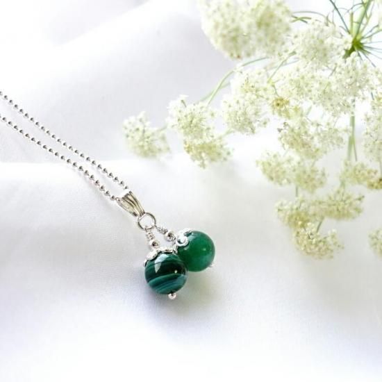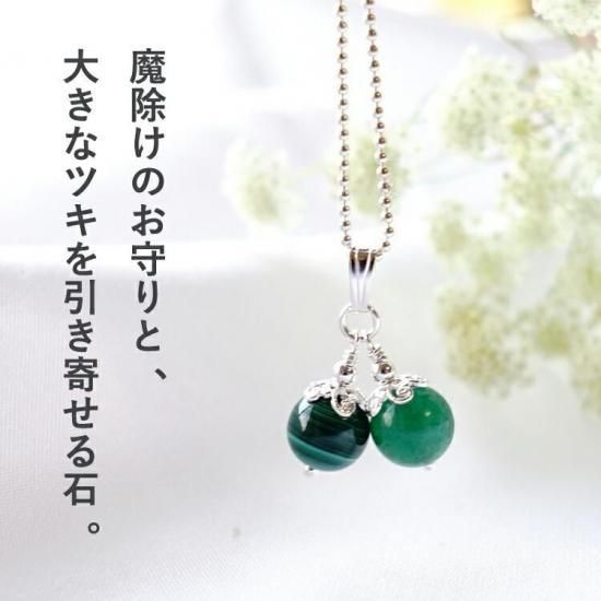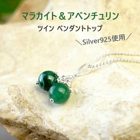 〜シルバー925使用!おしゃれも楽しみながら、魔除けと幸運をGET! 魔除けのマラカイトと大きなツキを運ぶアベンチュリンのツインペンダントトップです〜