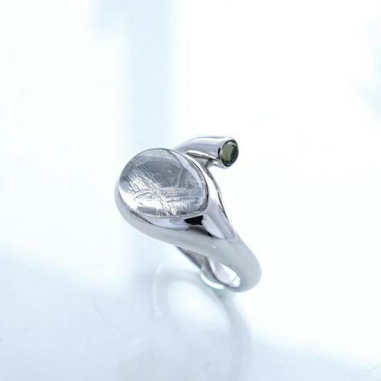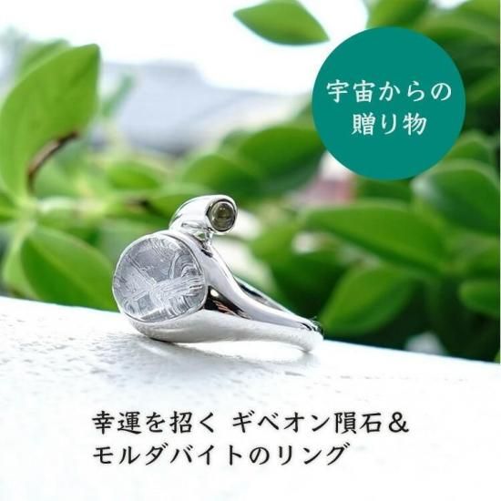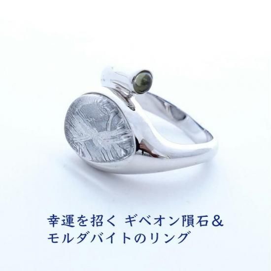 〜「縁のある人の元にしかやってこない 遥か遠い宇宙からのメッセージを持つ石」シルバー925使用 幸運を招く ギベオン隕石とモルダバイトのリングです。〜