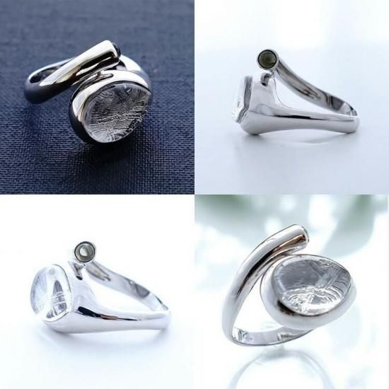 ◆素材:ギベオン隕石 & モルダバイト リング シルバー925