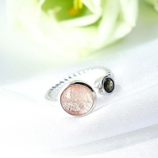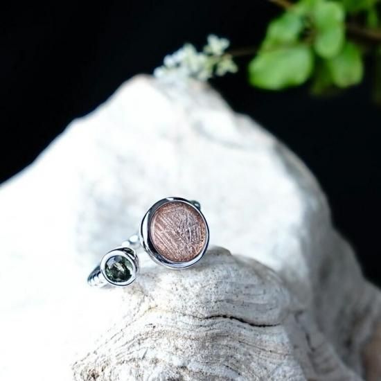 〜「縁のある人の元にしかやってこない 遥か遠い宇宙からのメッセージを持つ石」シルバー925使用 幸運を招く ギベオン隕石とモルダバイトのリングです。〜