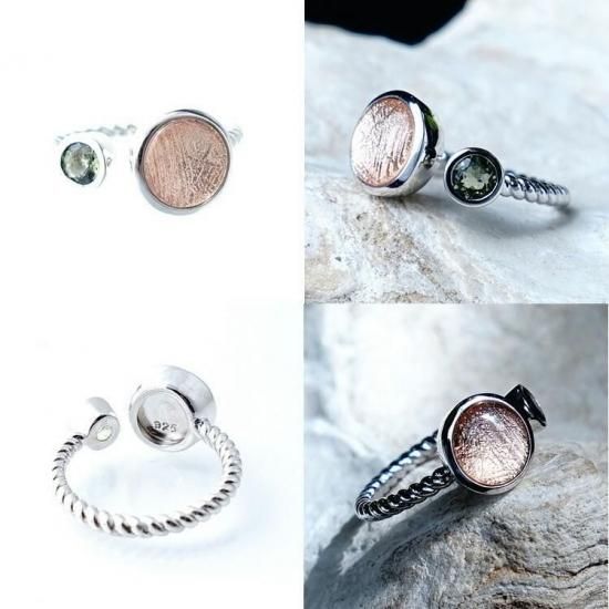 ◆素材:幸運を招く ギベオン隕石 & モルダバイト リング シルバー925