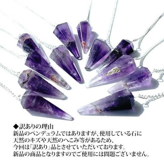 ◆訳ありの理由:新品のペンデュラムではありますが、使用している石に天然のキズや天然のへこみ等があるため、今回は「訳あり」品とさせていただいております。新品の商品となりますのでご使用には問題ございません。