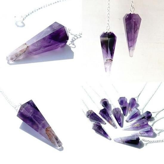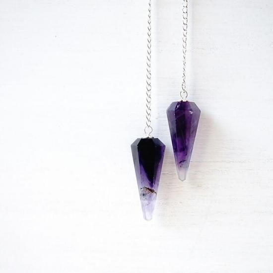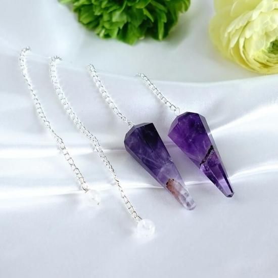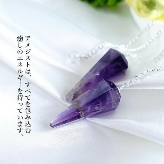 〜 訳あり品 癒しのパワーストーン アメジストの 「YES(はい) と NO(いいえ)」の答えを導き出してくれる、ダウジング用のペンデュラムです。(持ち手のところにヒマラヤ水晶付き)〜