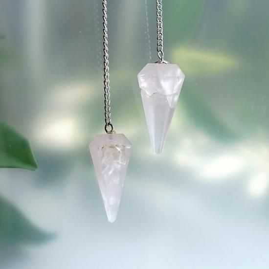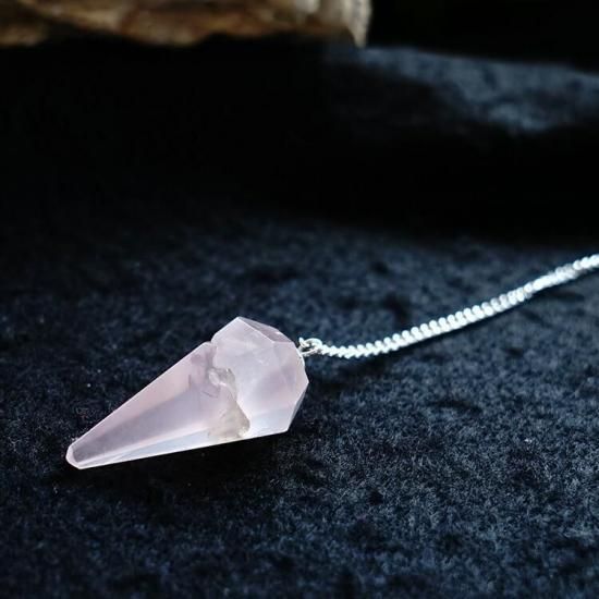 〜 訳あり品 ほんのりとしたピンク色に癒される ローズクォーツの 「YES(はい) と NO(いいえ)」の答えを導き出してくれる、ダウジング用のペンデュラムです。(持ち手のところにヒマラヤ水晶付き)〜