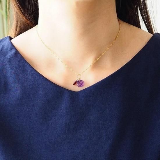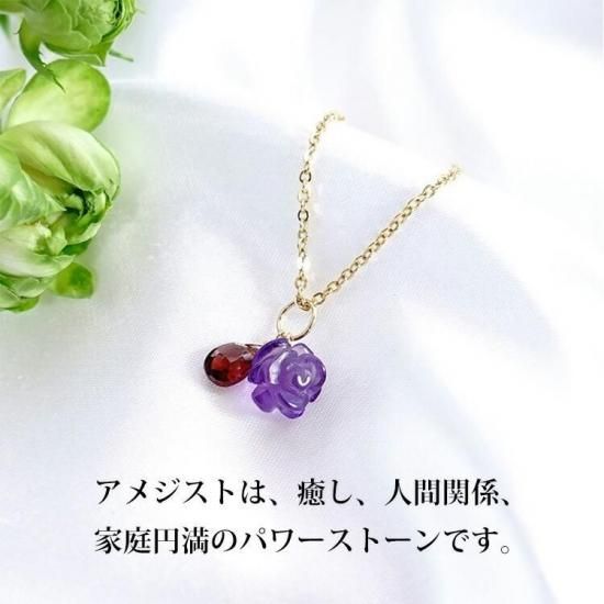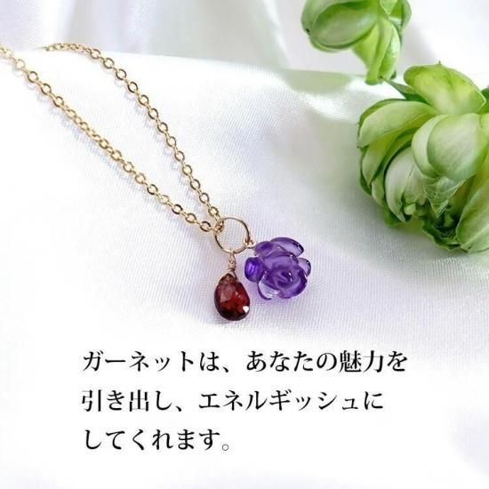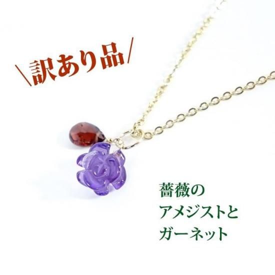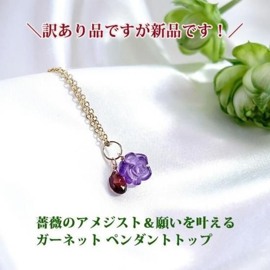 ◆訳ありの理由:新品のペンダントではありますが、使用している石に天然のキズや天然のへこみ等があるため、今回は「訳あり」品とさせていただいております。新品の商品となりますのでご使用には問題ございません。(薔薇のアメジスト、ガーネットの両方とも訳あり品となります)