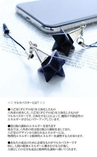 六角形の形をした、六芒星(ダビデの星)を立体化したものがマルカバスターです。立体化することによって、魔除けや創造性のエネルギーがさらにパワーアップしています。