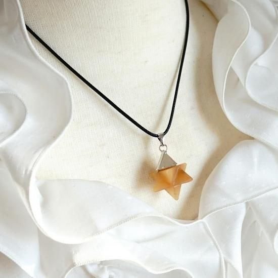 〜 優しいエネルギーで包み込む 訳あり品 アラゴナイト マルカバスター(六芒星・立体ヘキサゴン)のペンダントトップです。〜