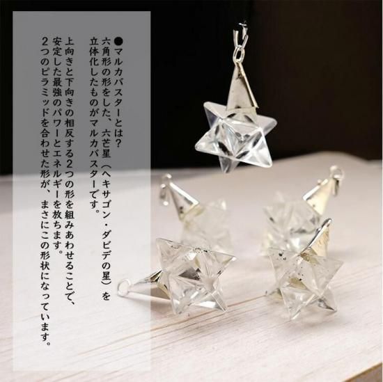 六角形の形をした、六芒星(ヘキサゴン・ダビデの星)を立体化したものがマルカバスターです。