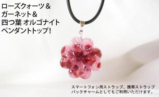 四つ葉 ローズクォーツ&ガーネット オルゴナイト ペンダントトップ!〜