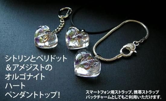 シトリン、ペリドット、アメジストのオルゴナイト ハート ペンダントトップ!〜