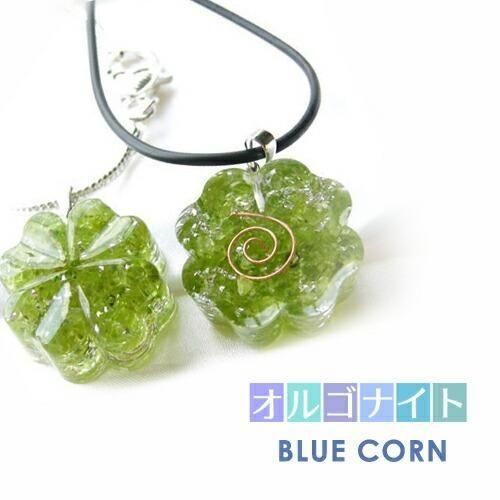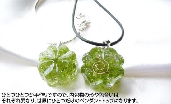 四つ葉 ペリドット オルゴナイト ペンダントトップ!〜